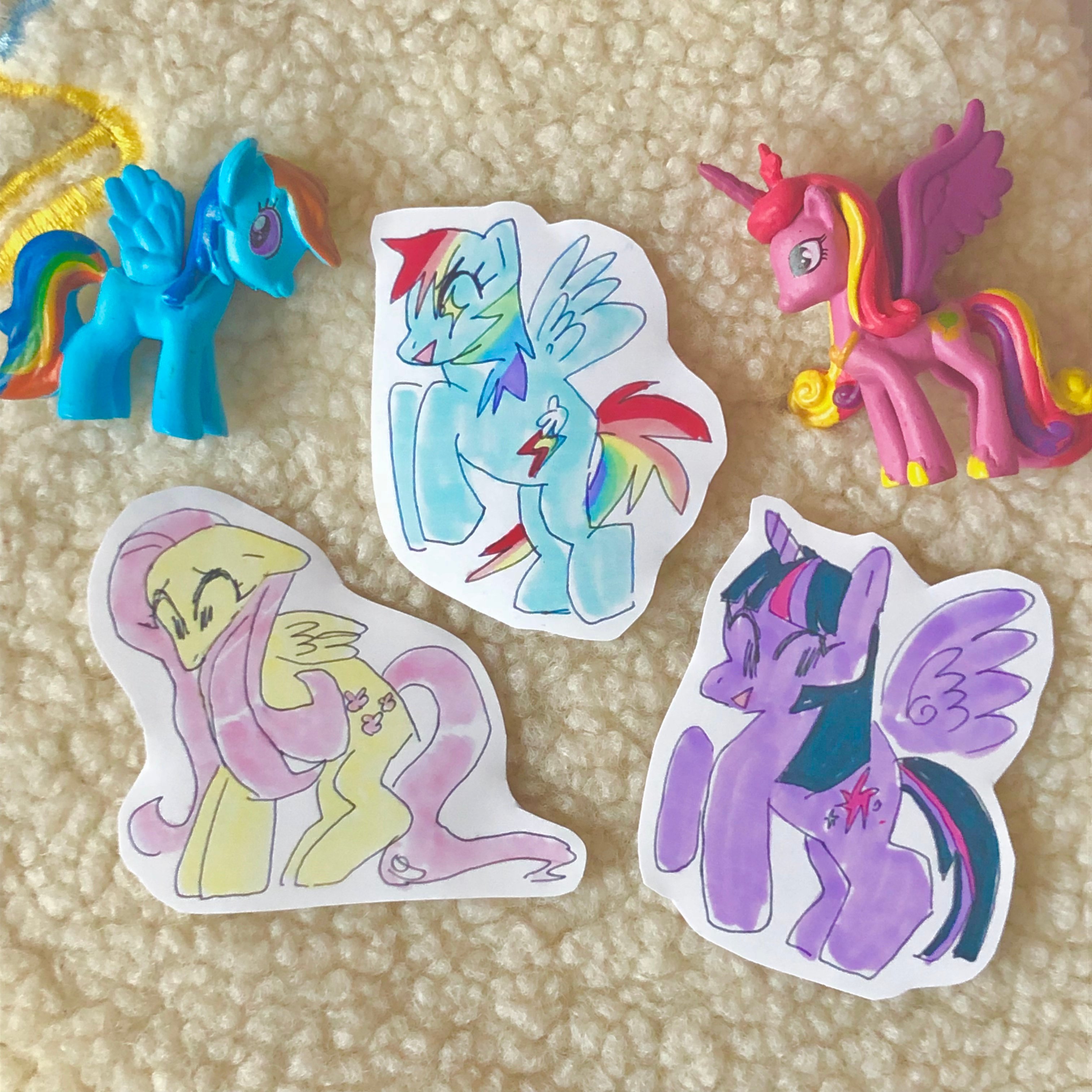 2 inch stickers of fluttershy, rainbow dash, and twilight sparkle from my little pony friendship is magic.