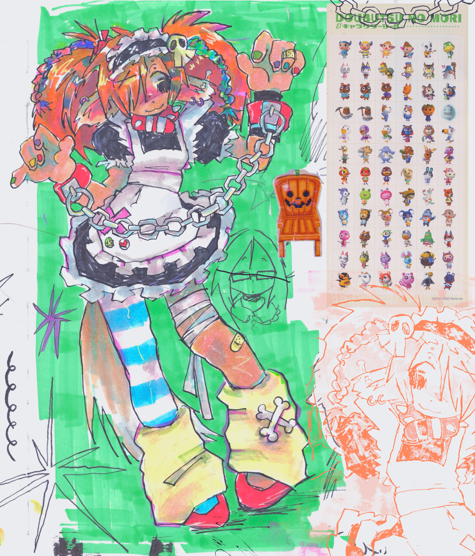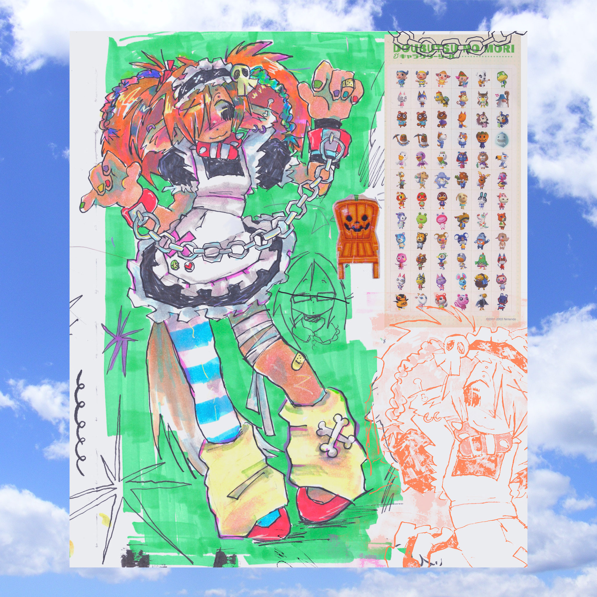 8 x 10 inch print of a collaged piece using stickers i collected over the years paired with a cute maid girl :3