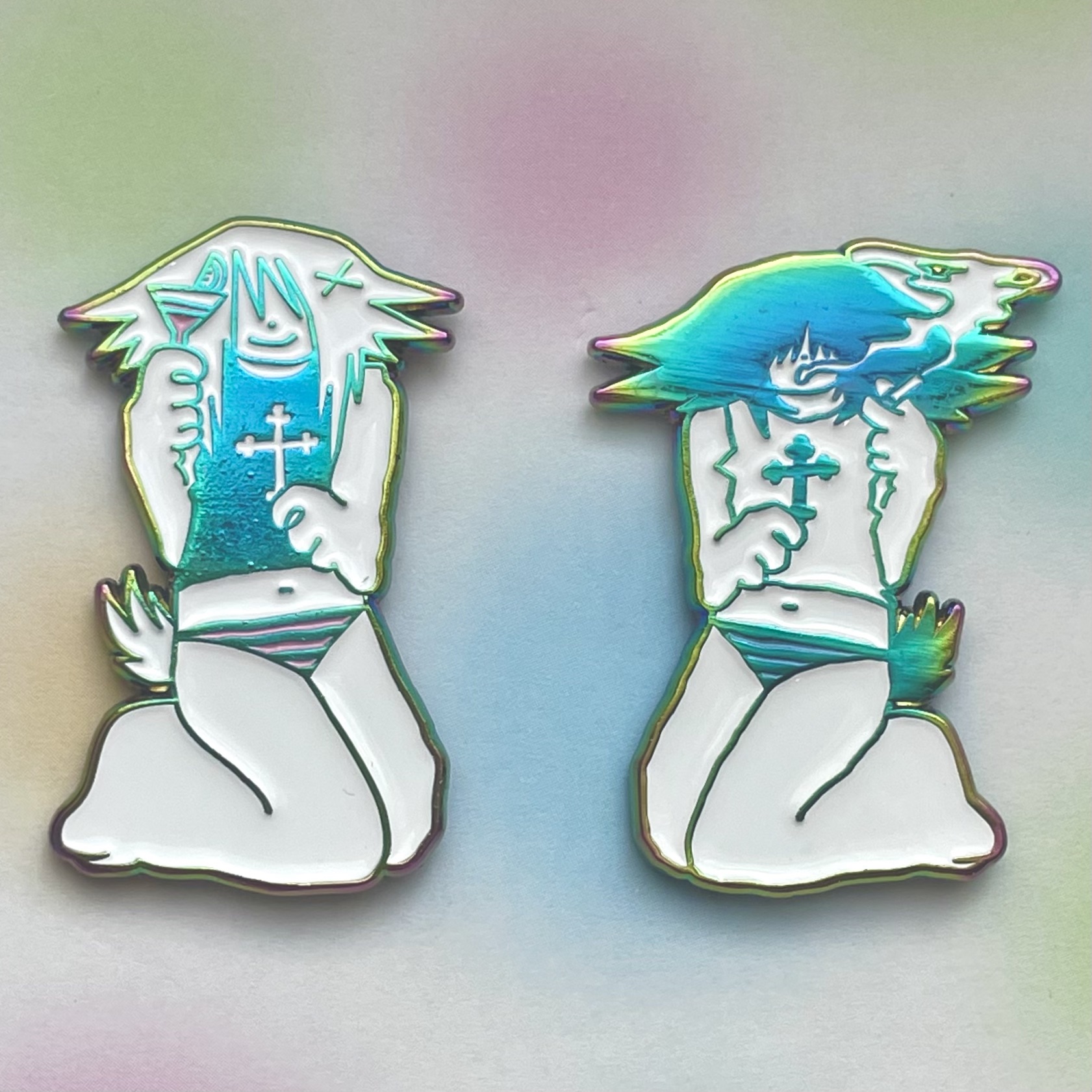 1.5 inch holographic/rainbow enamel pins of 2 bffs doing what they do best <3 Grab one for yourself or buy both for u and a special friend at a discounted price!!!!