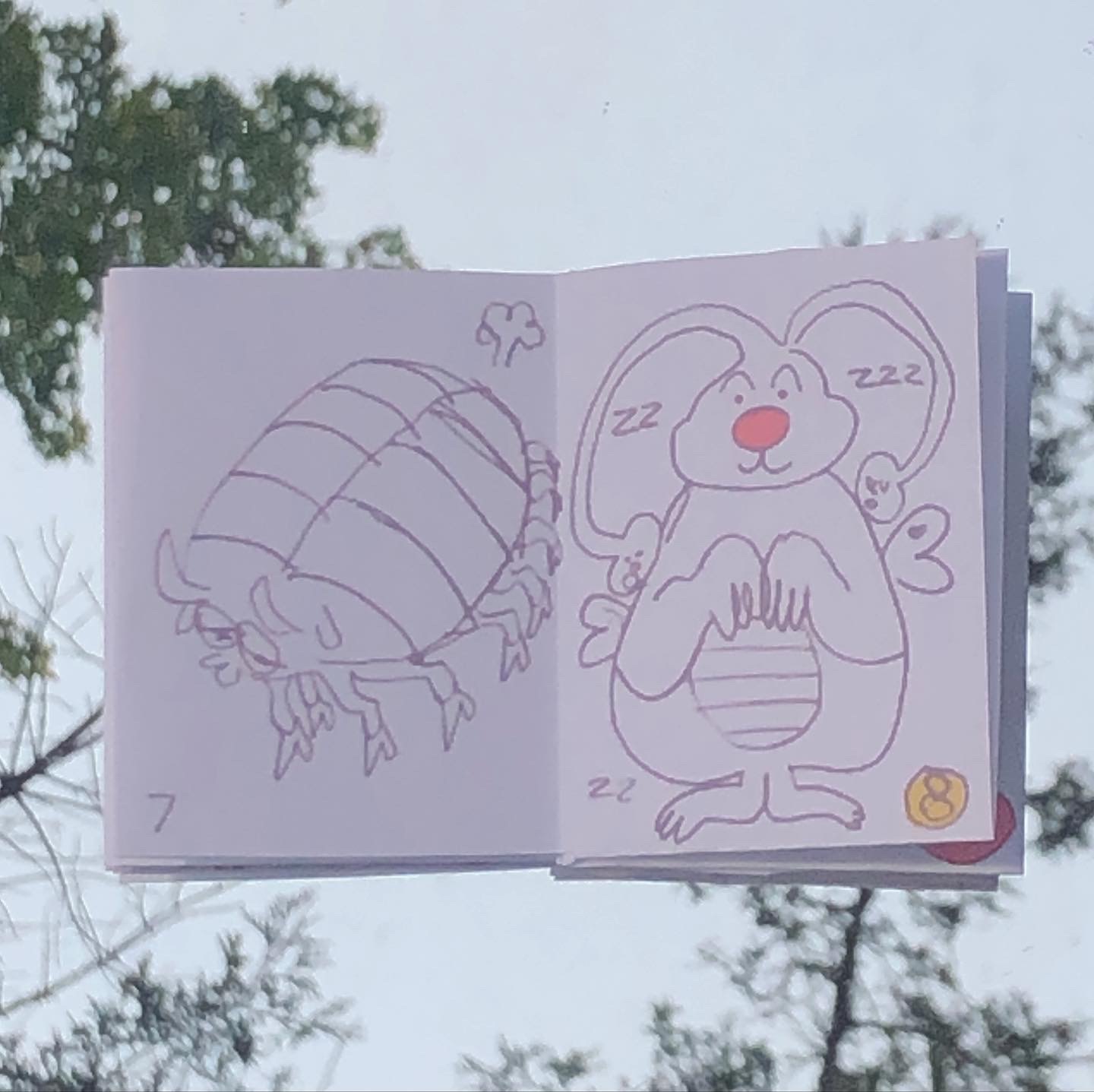 mini 16 page zine filled with a bunch of silly bug drawings! made with constant (@yawnstant on instagram/twitter) measures 2 x 2.75 inches