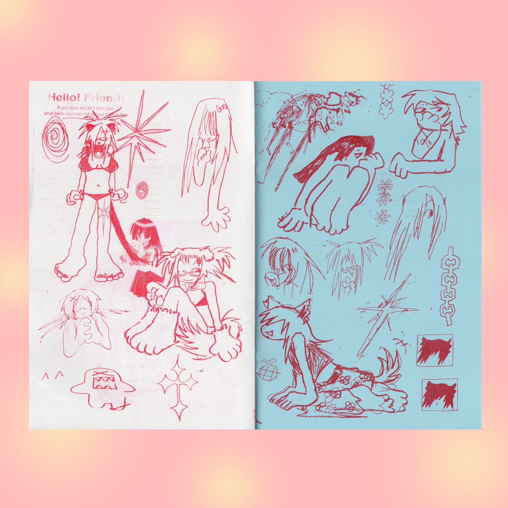 18-pg zine compiling various sketchbook drawings and other special things from 2023. hole-punched star on each cover, making it even more special and unique!