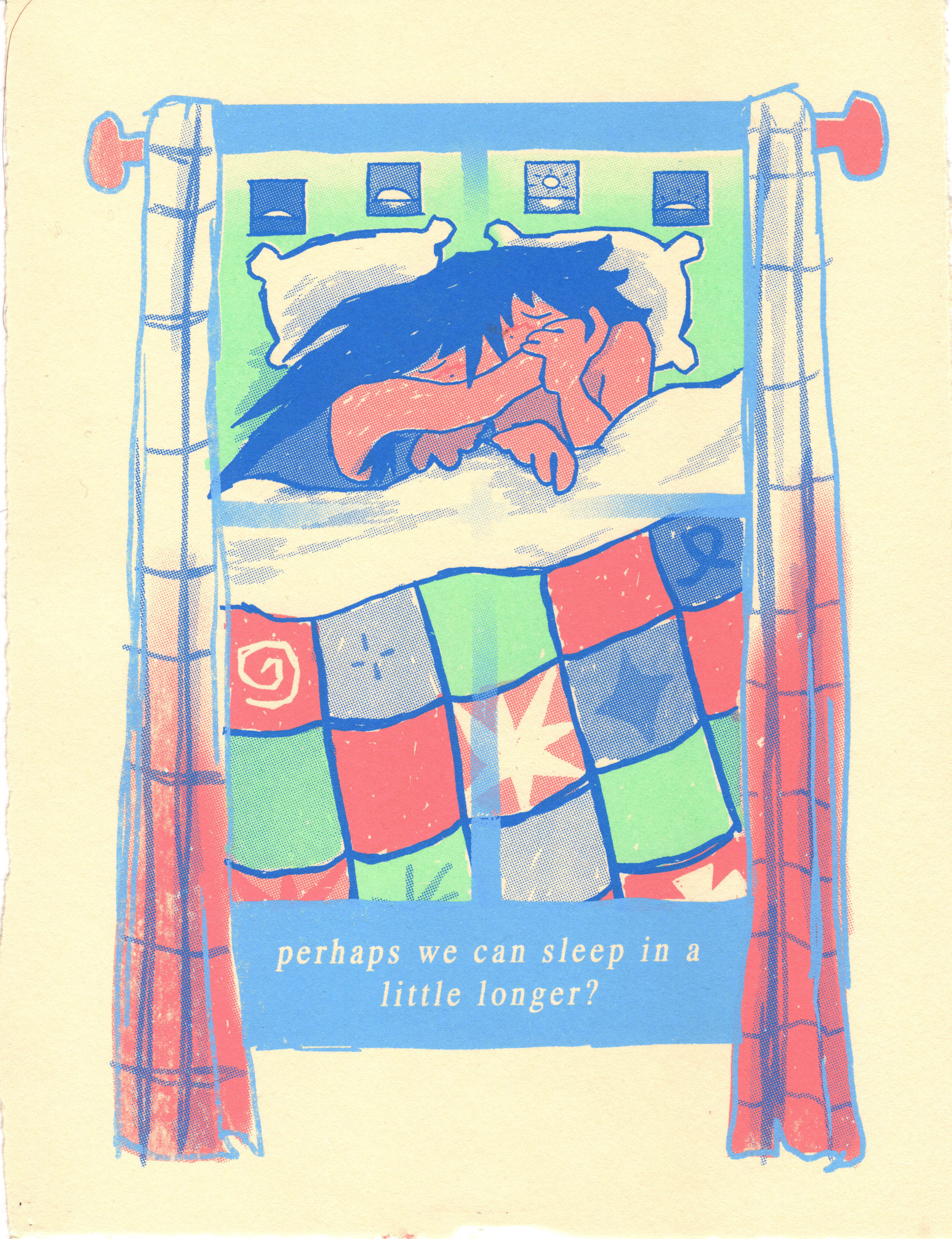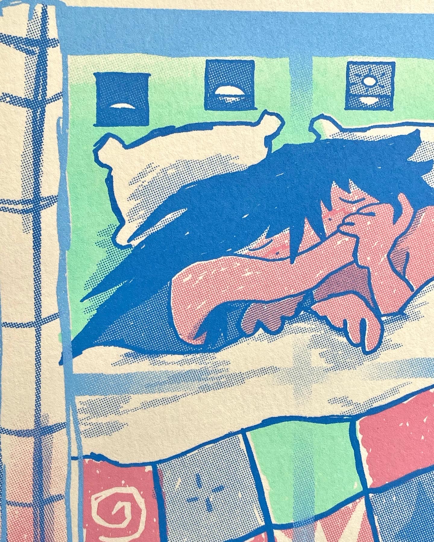 8.5 x 11 inch screen print of a couple in bed -- hand done by me!!