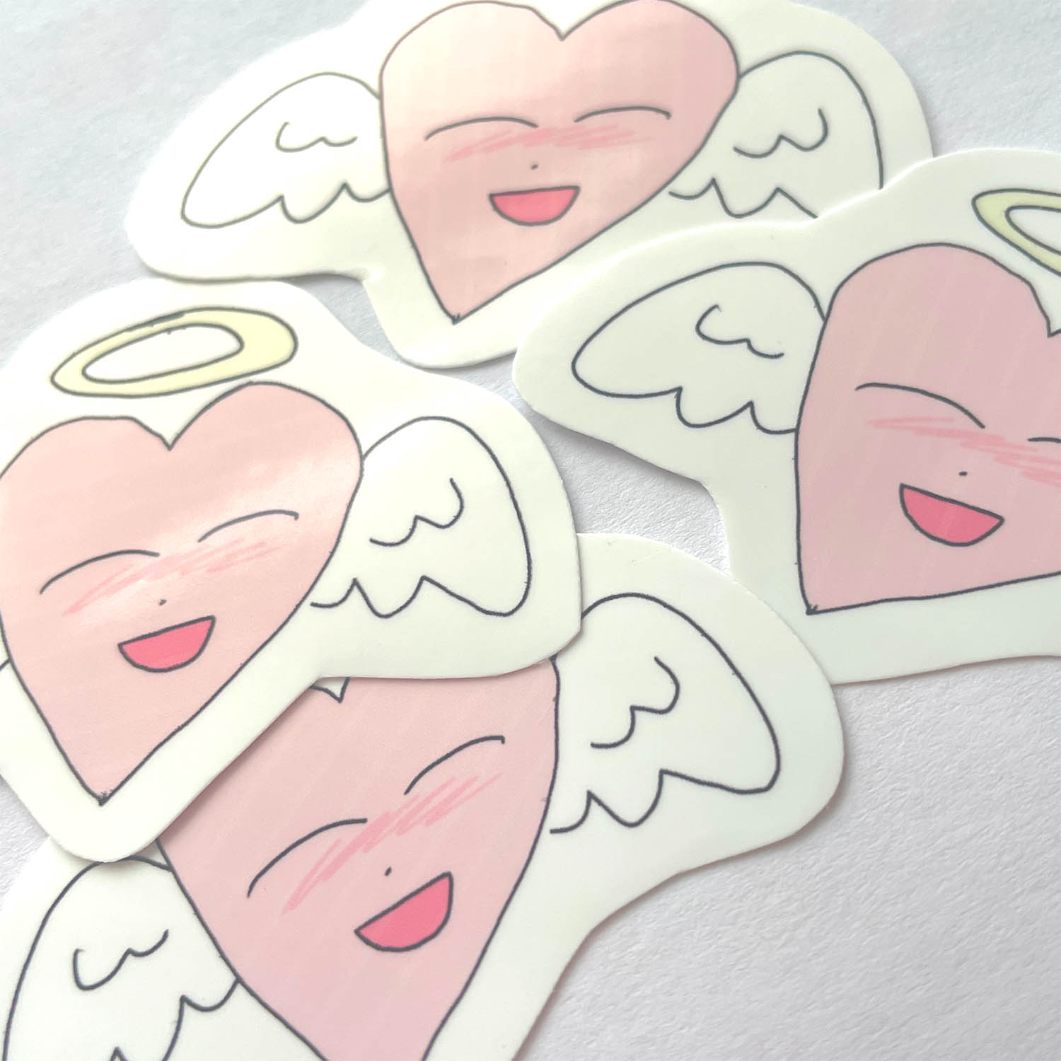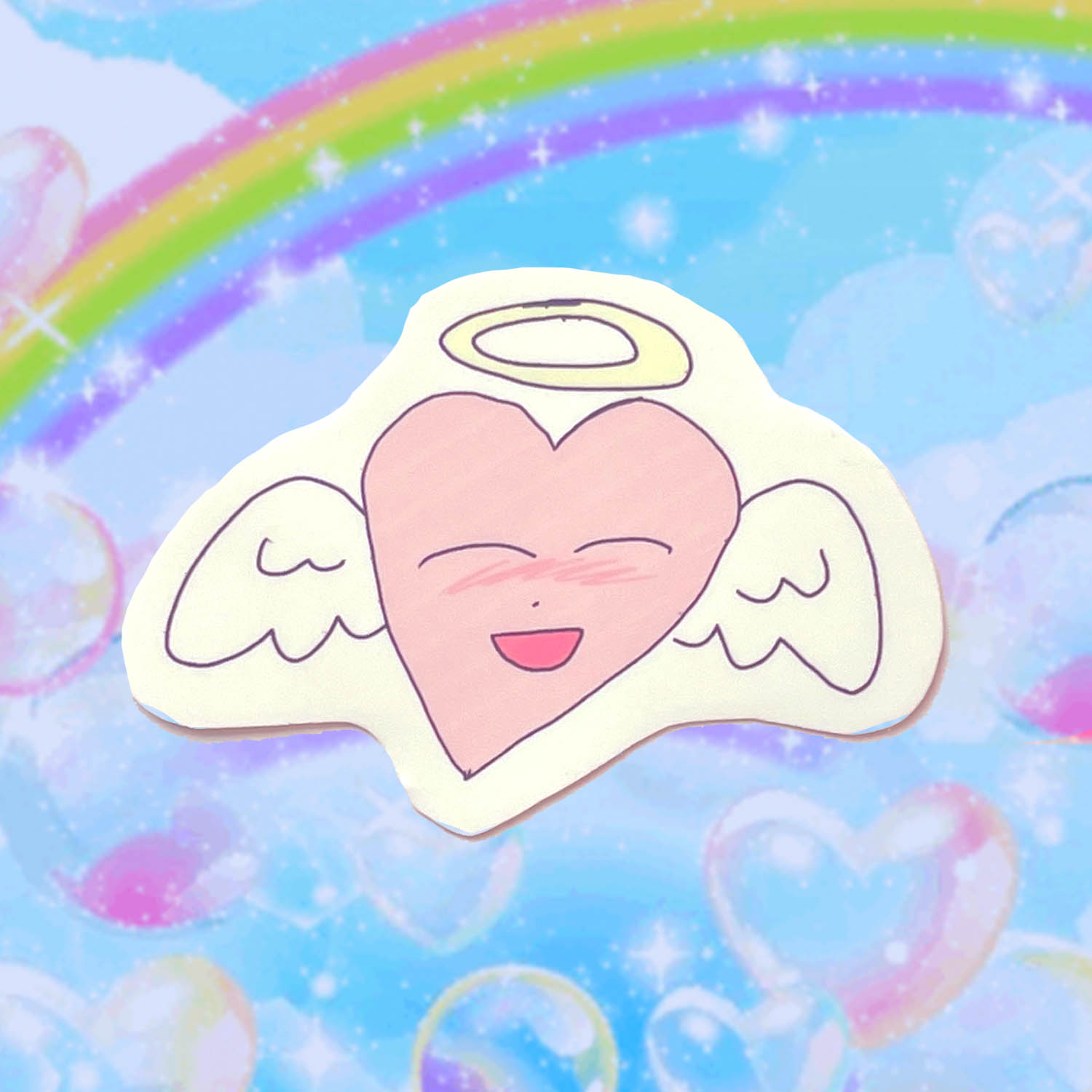 1.5 x 2 inch pearlescent gloss sticker of an angelic heart